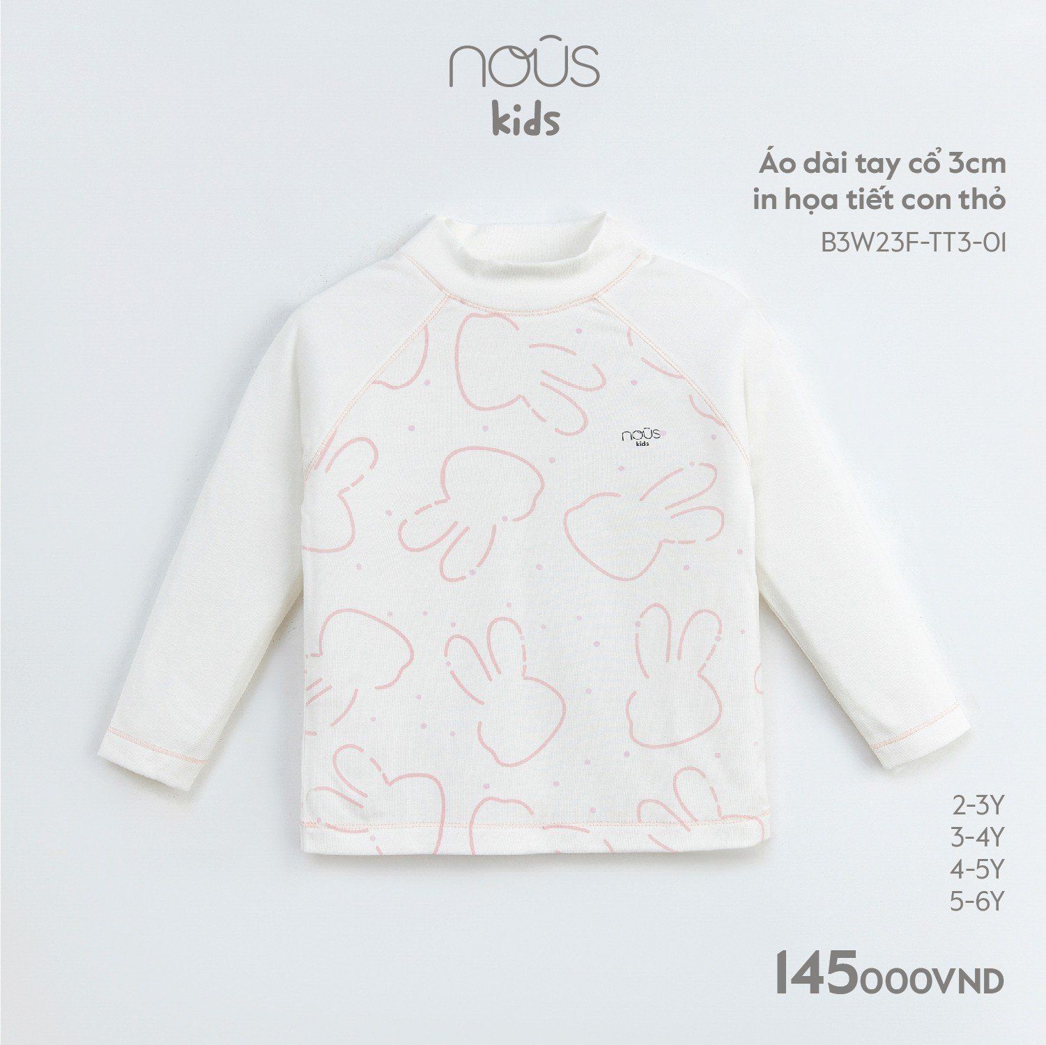 Áo dài tay Nous Kid cổ 3cm in họa tiết con thỏ
