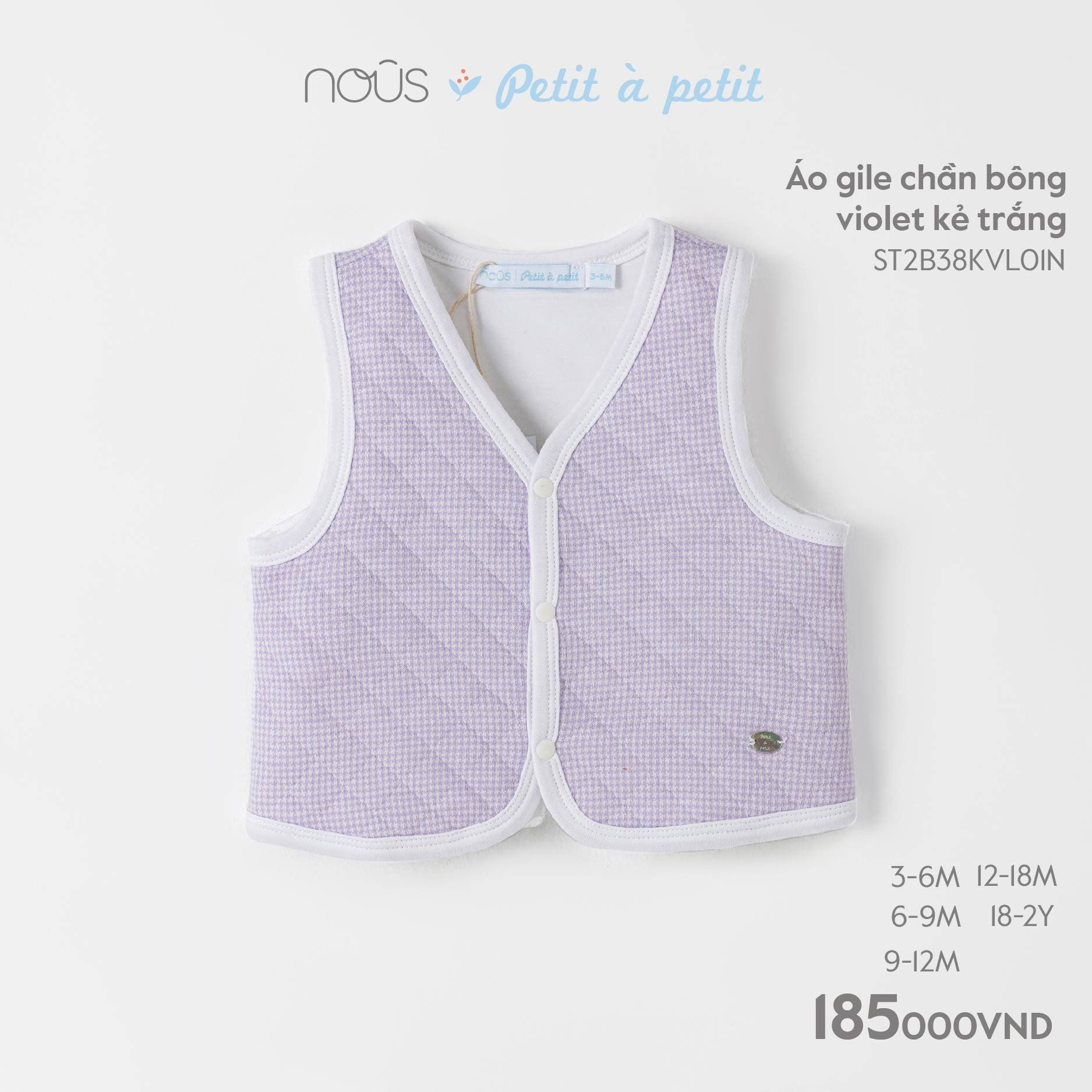 Áo gile Nous Petit à petit chần bông violet kẻ trắng