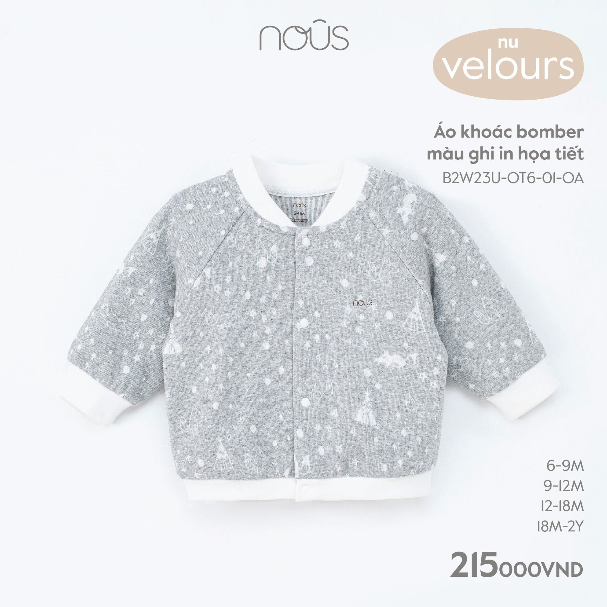 Áo khoác bomber Nous Velours màu ghi in họa tiết