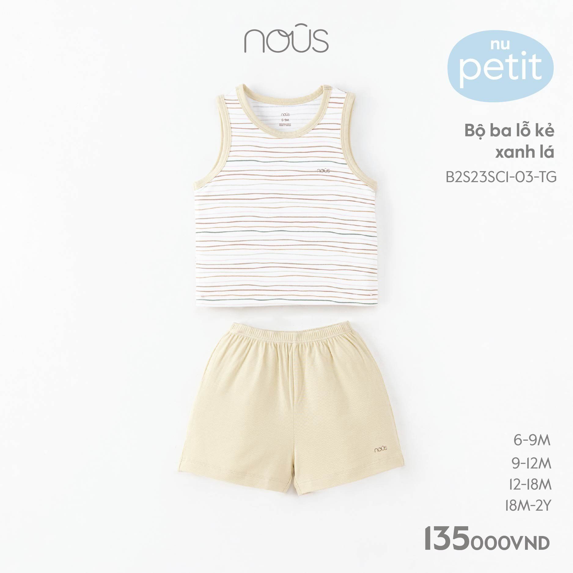Bộ ba lỗ Nous petit kẻ xanh lá phối