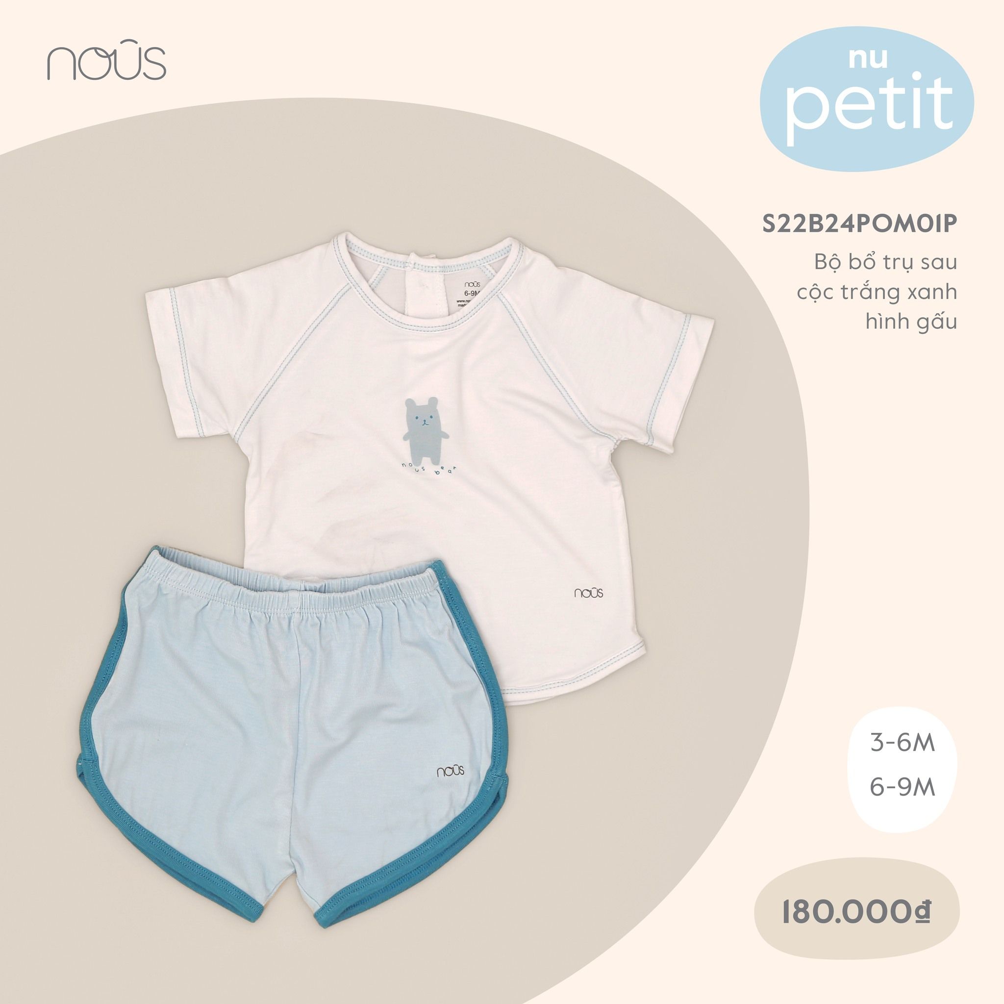 Bộ bổ trụ sau cộc nous petit trắng xanh hình gấu