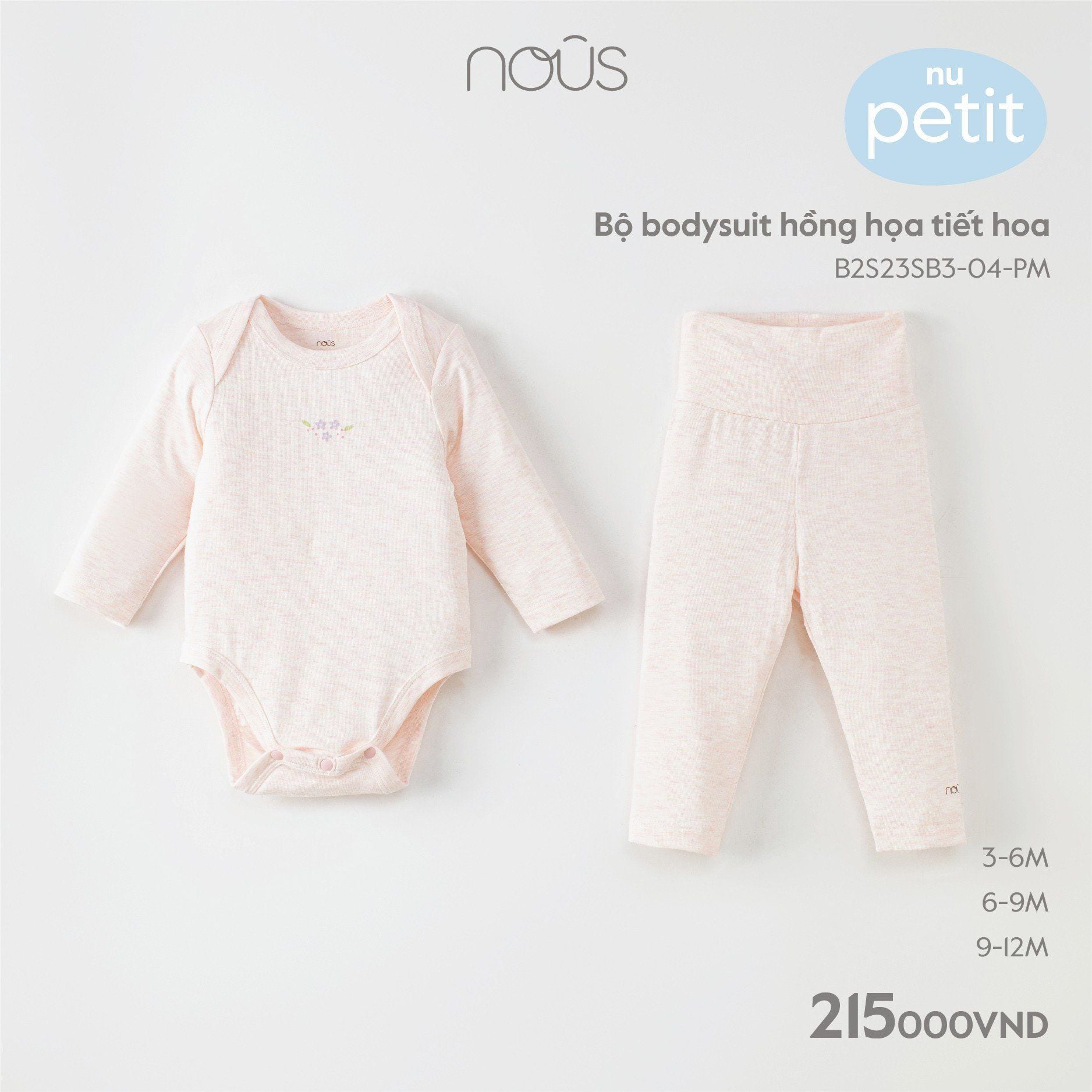 Bộ bodysuit dài Nous petit hồng họa tiết hoa
