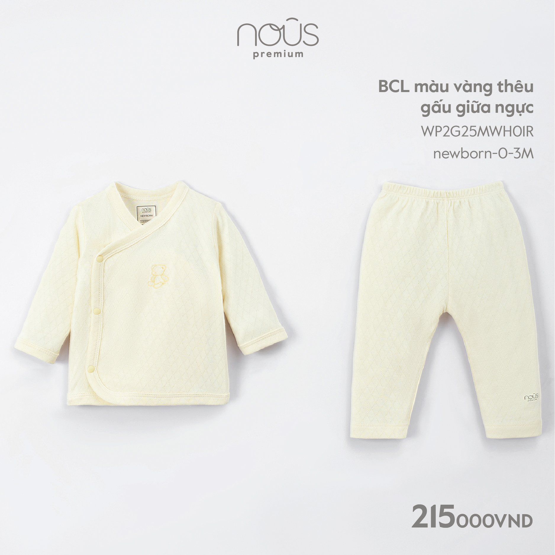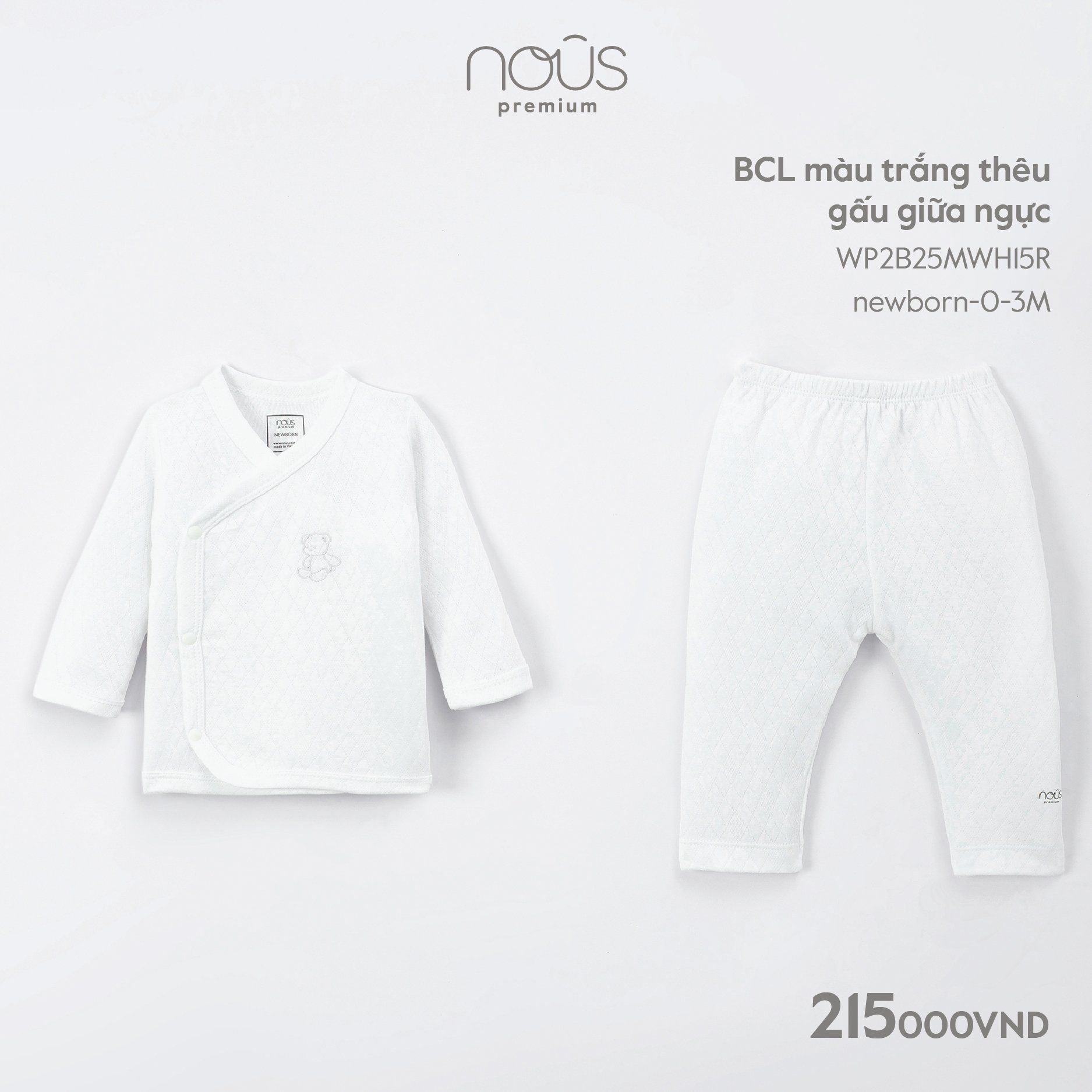 Bộ cài lệch dài Nous Premium thêu gấu giữa ngực