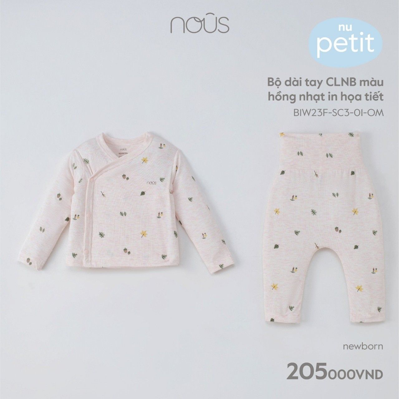 Bộ cài lệch newborn Nous petit màu hồng nhạt in họa tiết