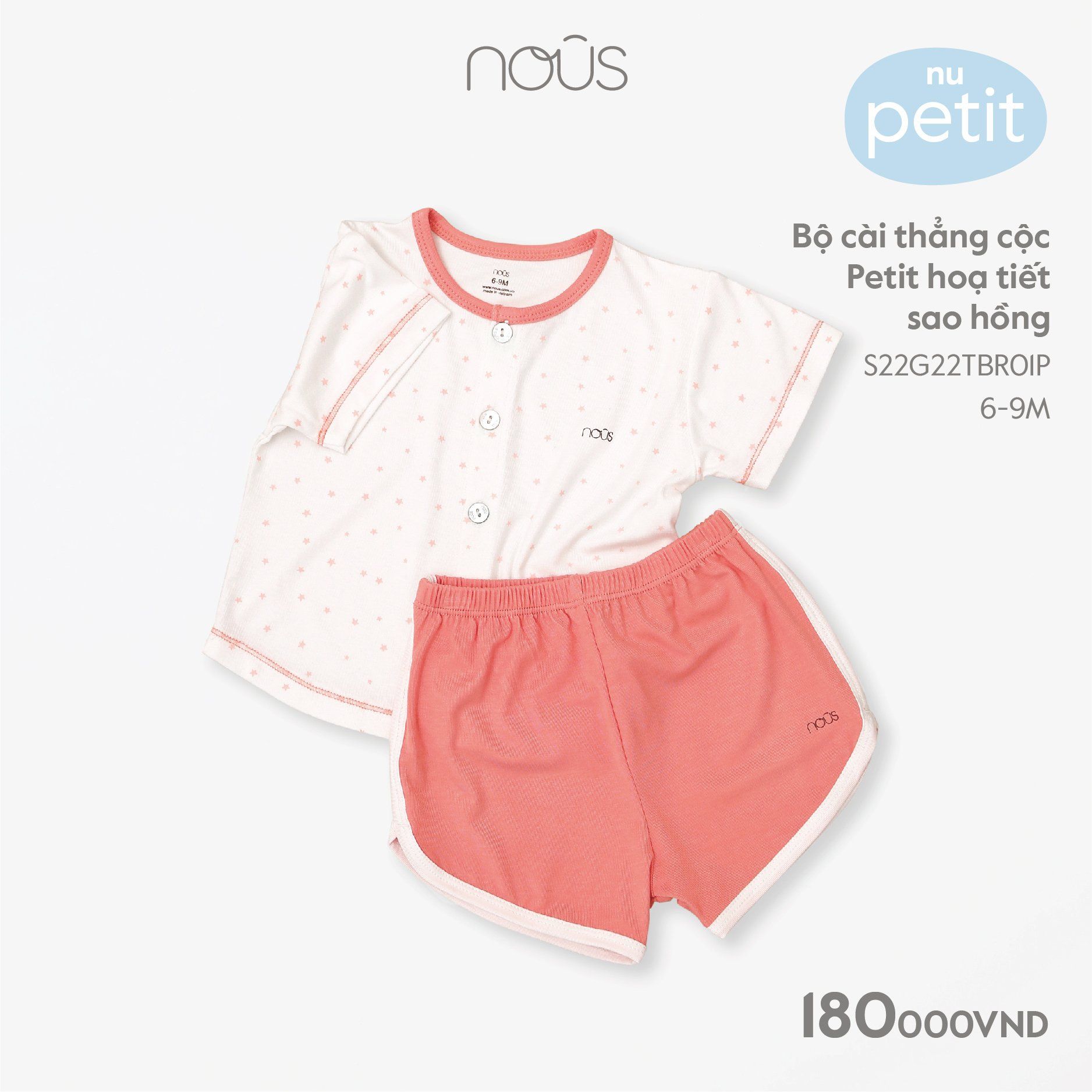 Bộ cài thẳng cộc Nous petit hoạ tiết sao hồng