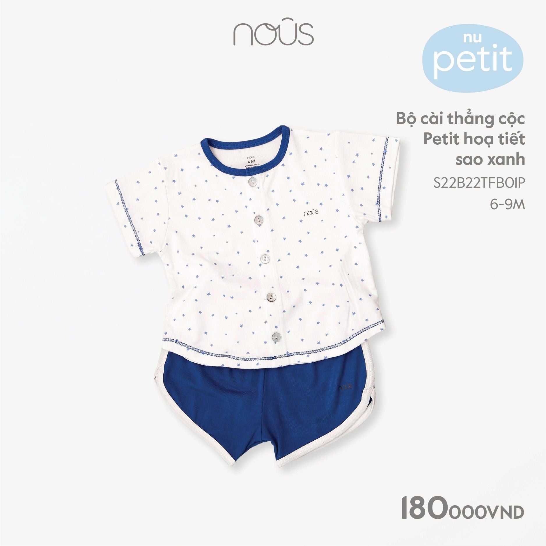 Bộ cài thẳng cộc Nous petit hoạ tiết sao xanh