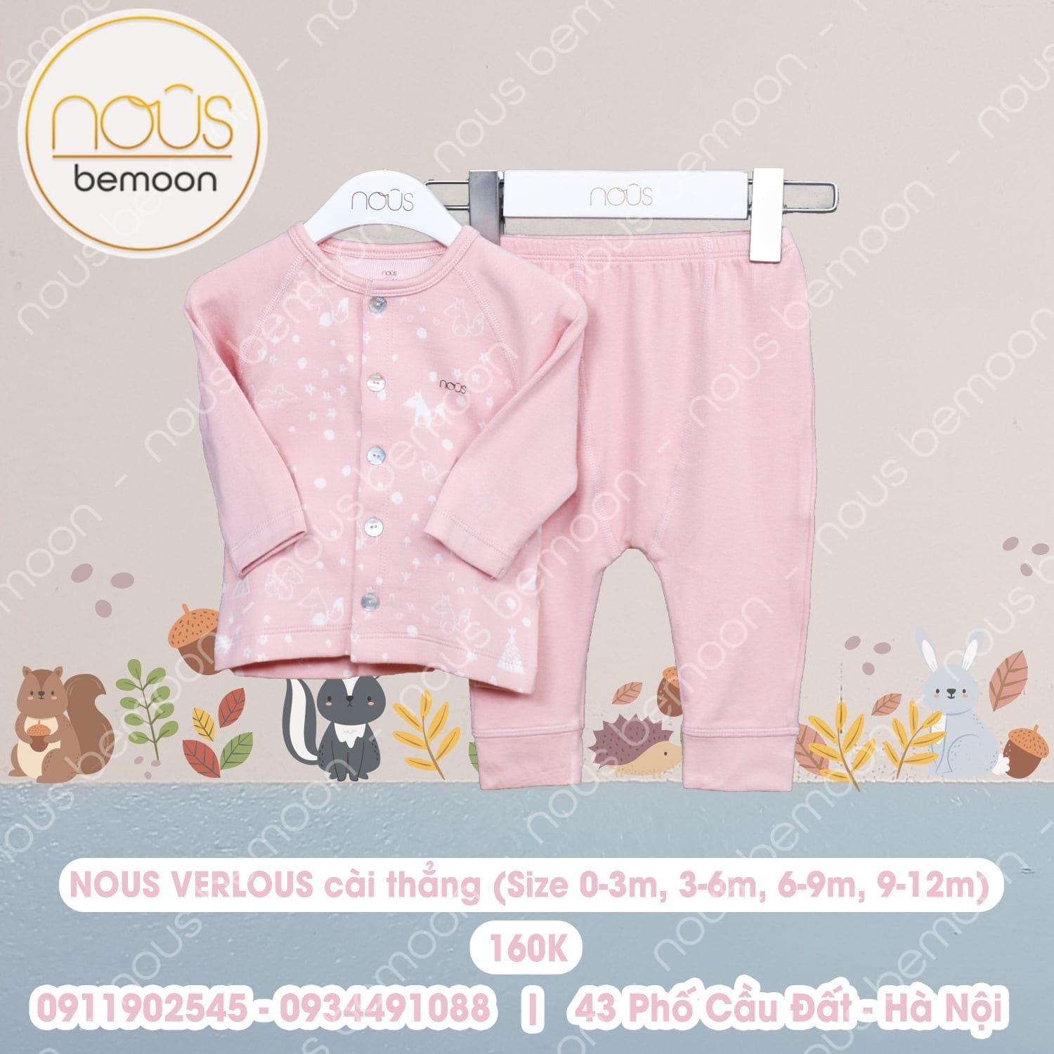 Bộ cài thẳng Nous Velours cáo hồng đào
