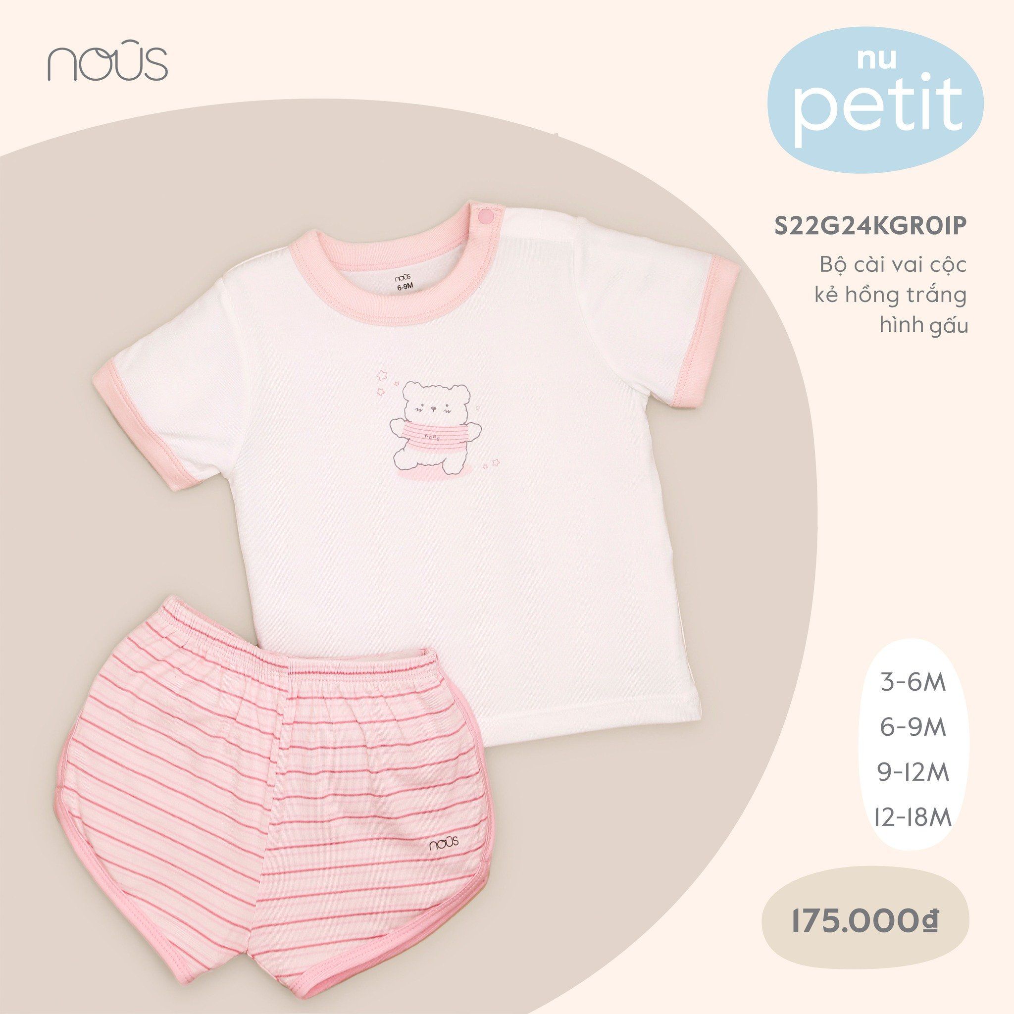 Bộ cài vai cộc Nous pettit kẻ hồng trắng hình gấu