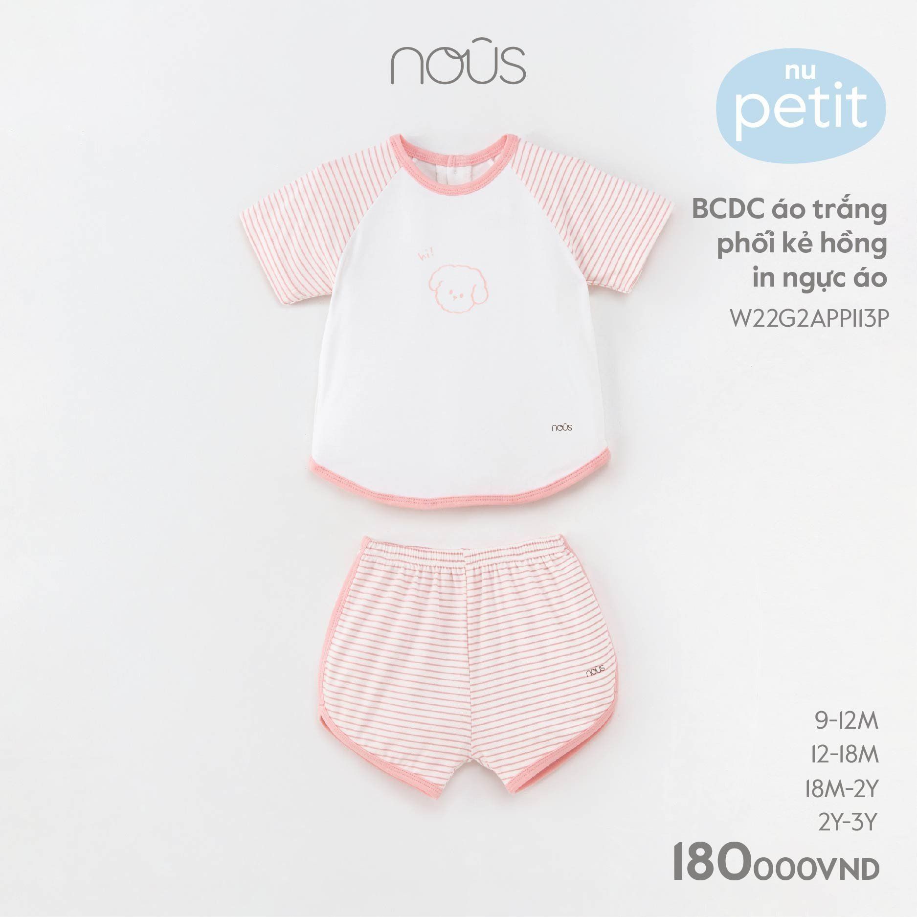Bộ chui đầu cộc Nous petit áo trắng phối kẻ hồng in ngực áo
