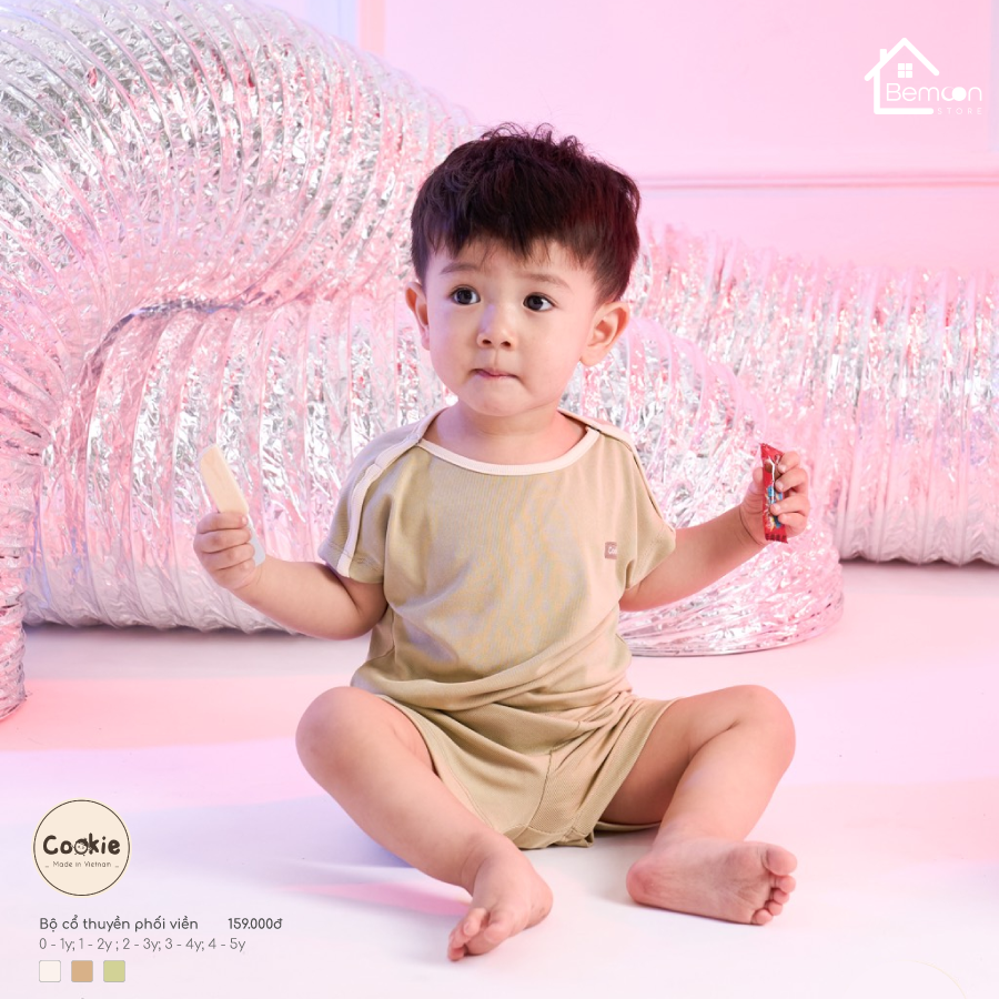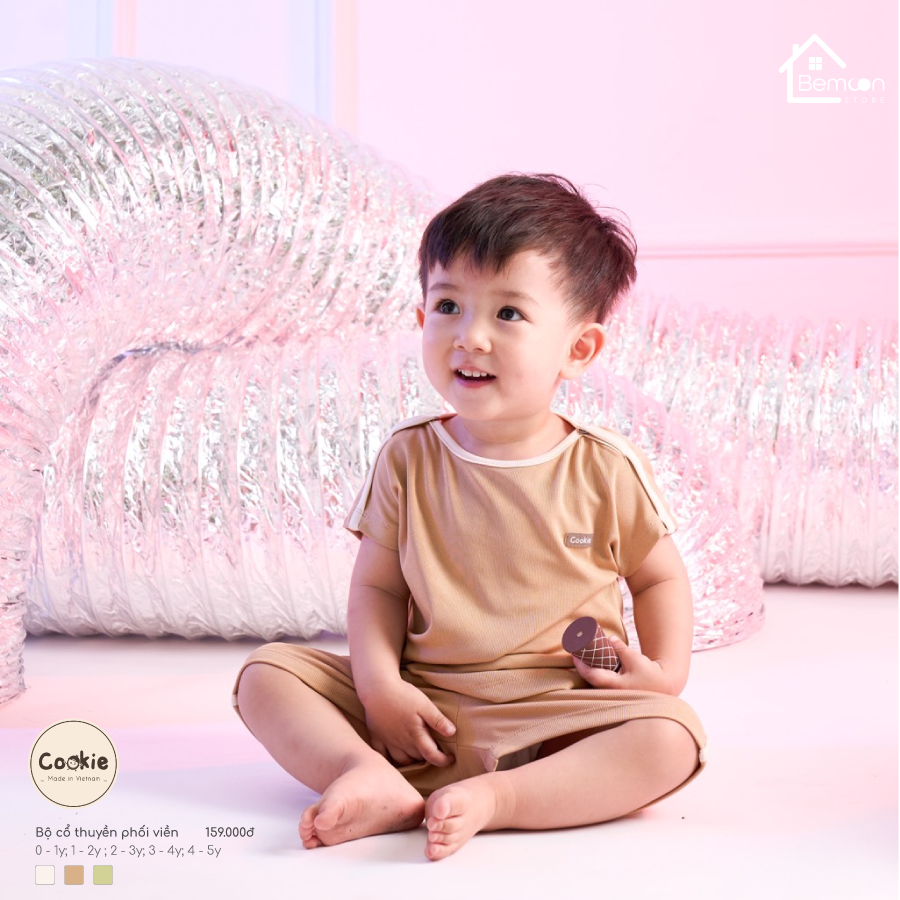 Bộ cộc cổ thuyền phối viền Cookie (0-5 tuổi)