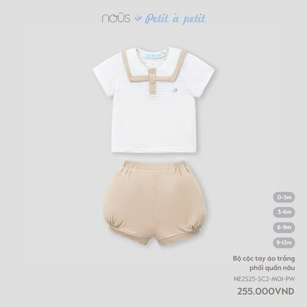 Bộ cộc tay áo trắng phối quần nâu Nous Petit à petit (cổ thuỷ thủ)