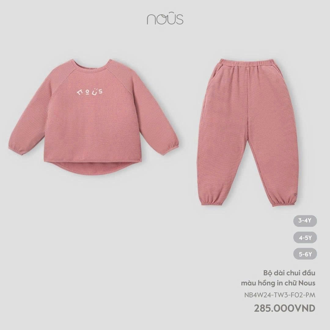 Bộ dài chui đầu màu hồng in chữ Nous Kid