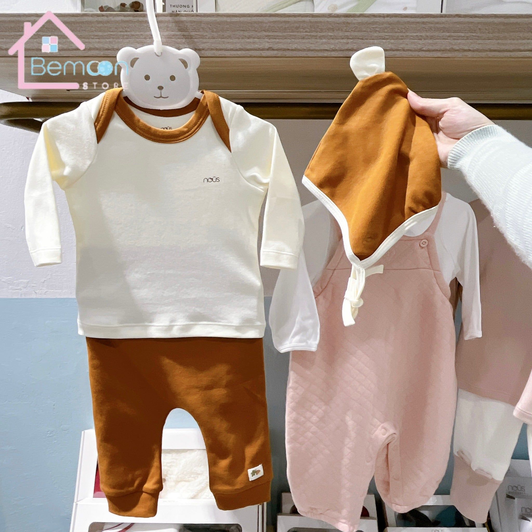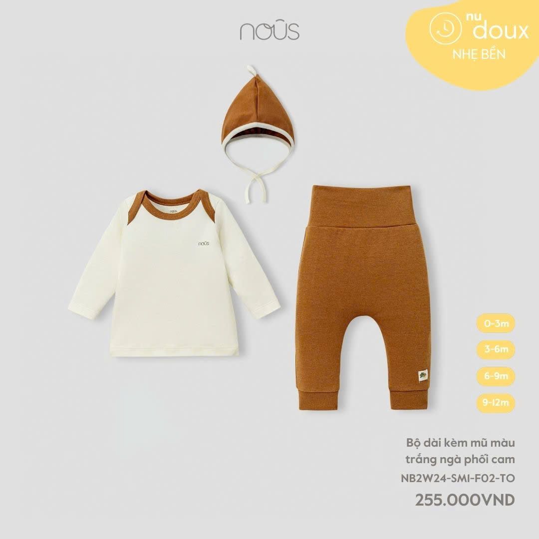 Bộ dài kèm mũ màu trắng ngà phối cam Nous Doux