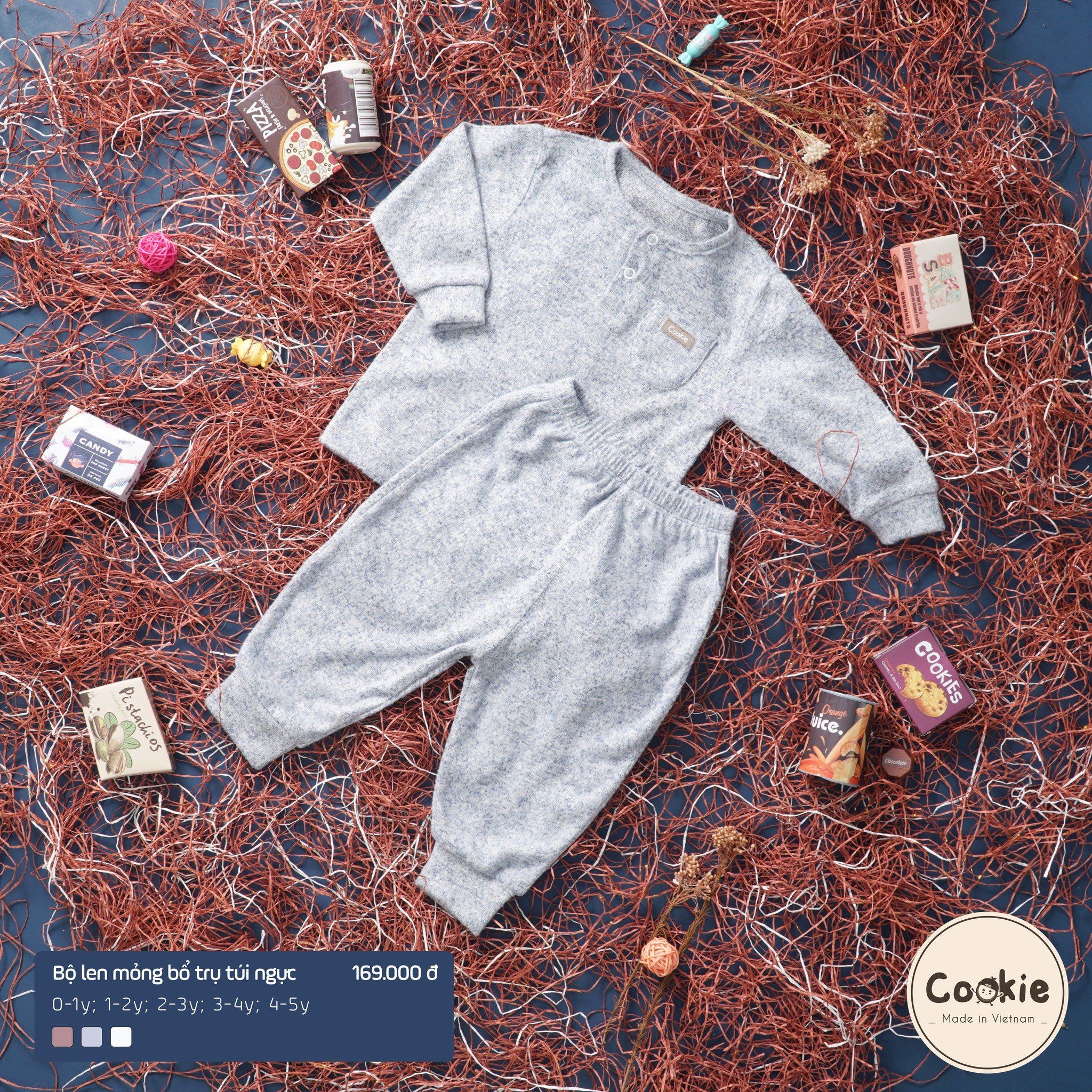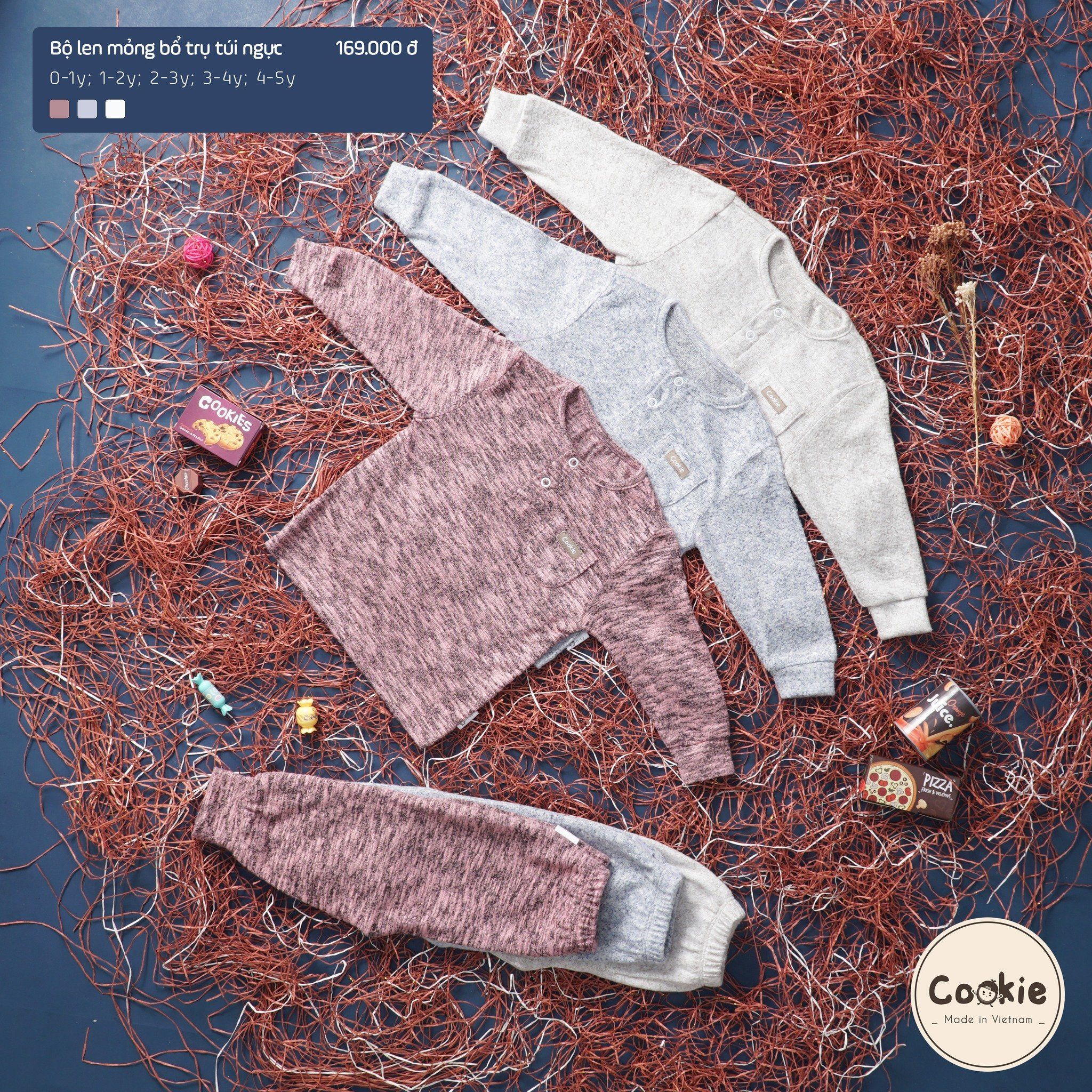 Bộ len mỏng bổ trụ túi ngực Cookie