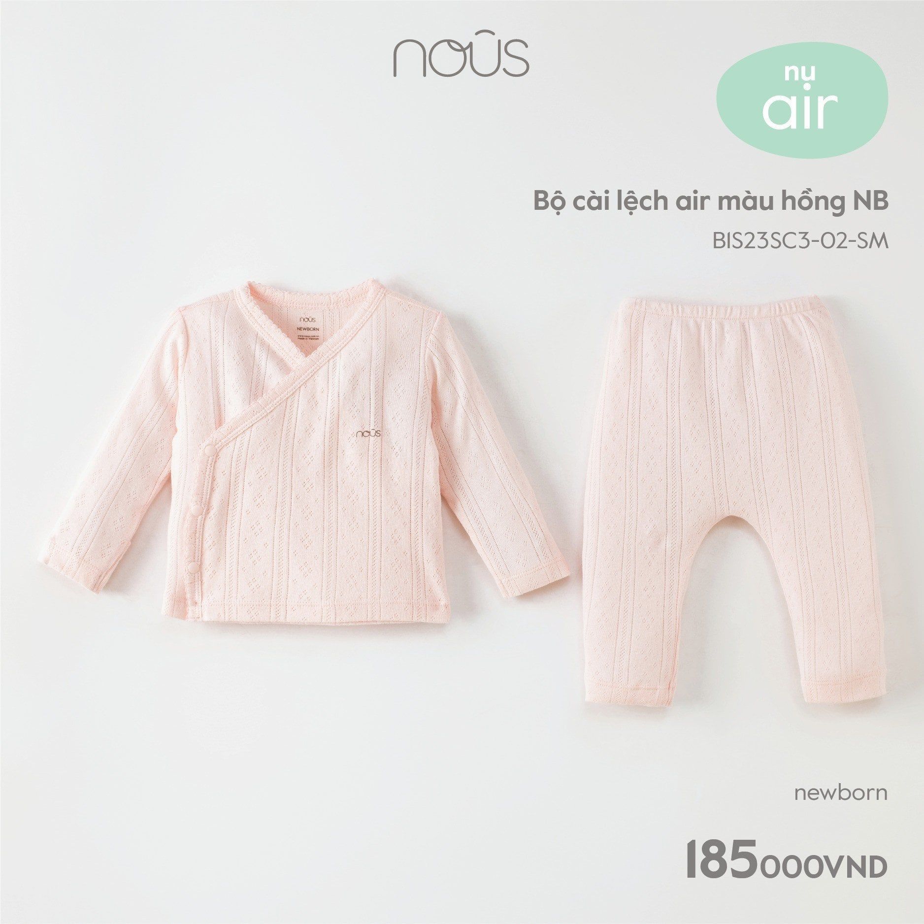 Bộ newborn Nous Air cài lệch màu hồng NB