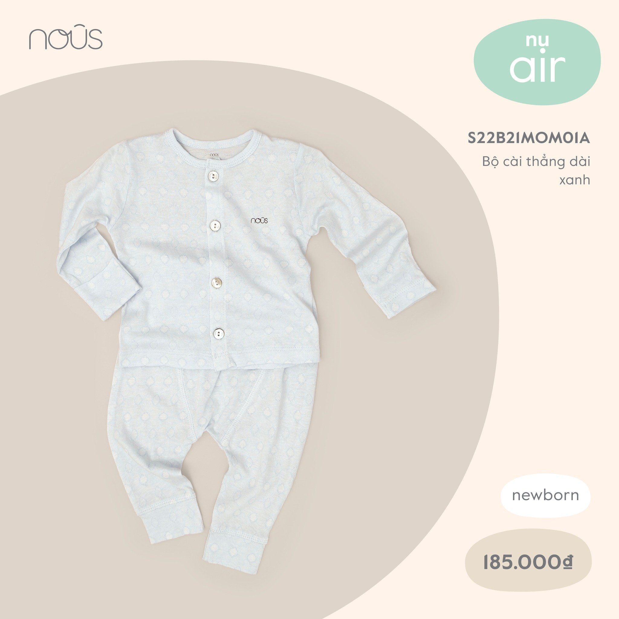 Bộ newborn Nous air cài thẳng dài xanh