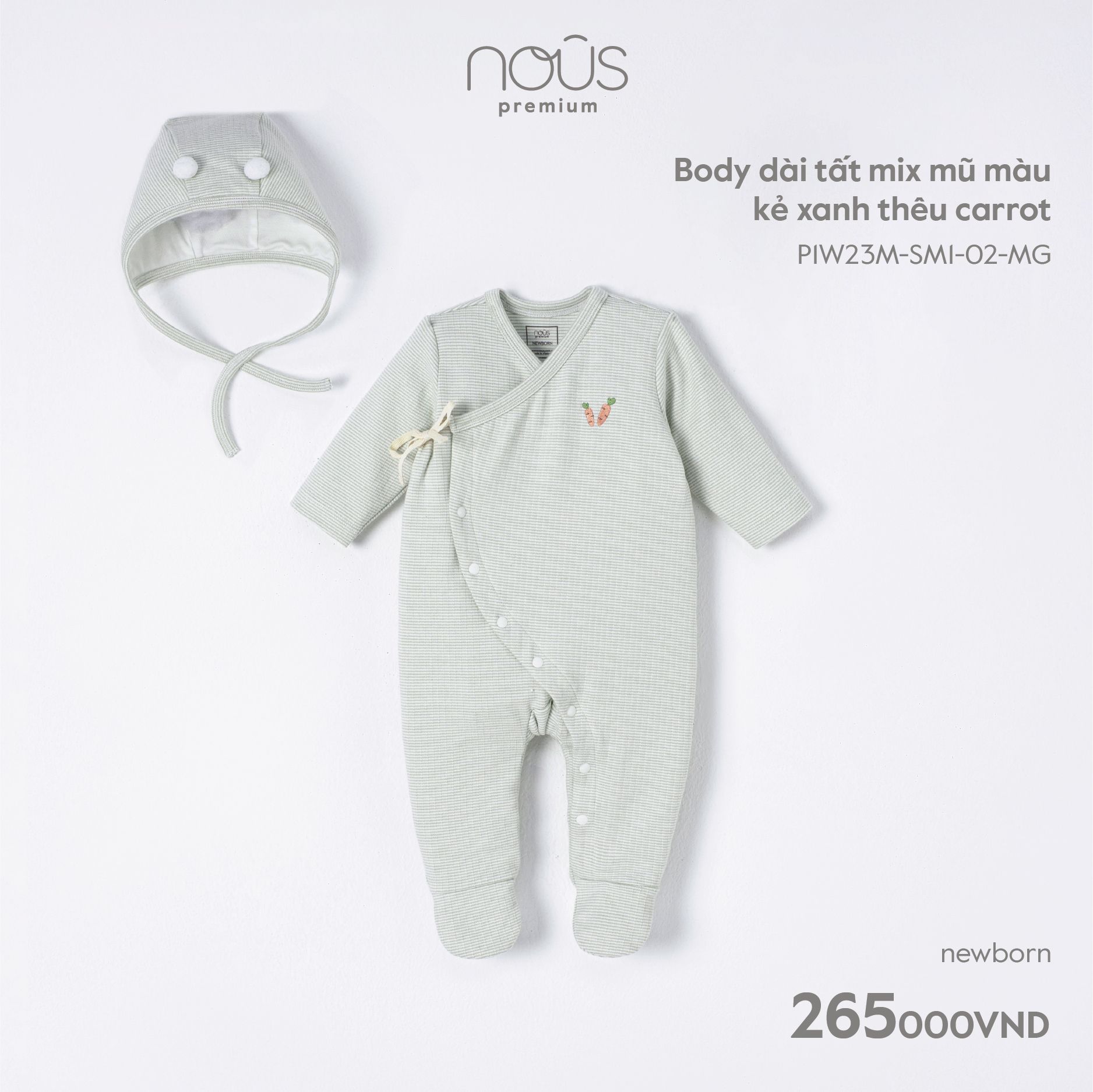 Body dài tất Nous Premium mix mũ màu kẻ xanh thêu carrot NB