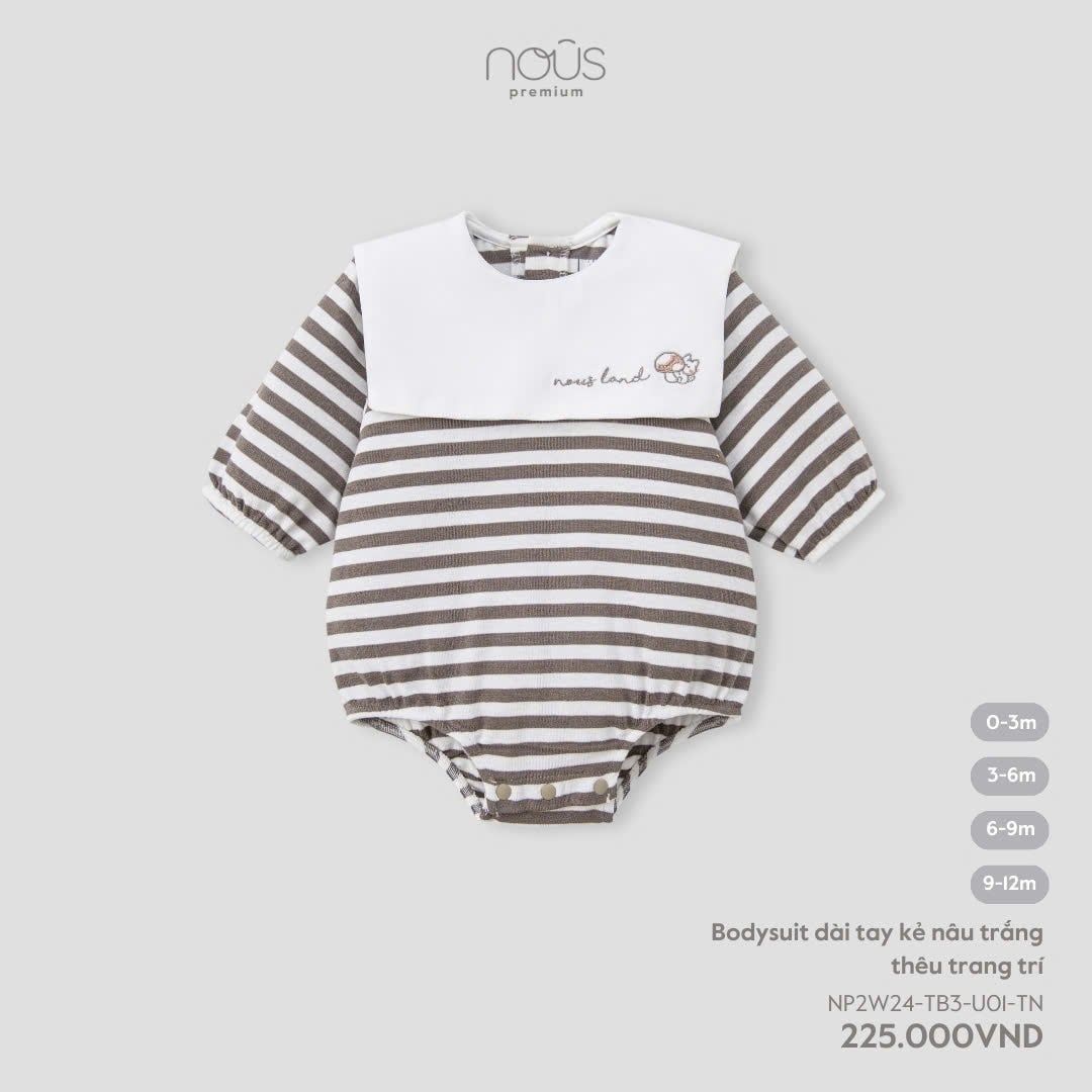 Bodysuit dài tay kẻ nâu trắng thêu trang trí Nous Premium