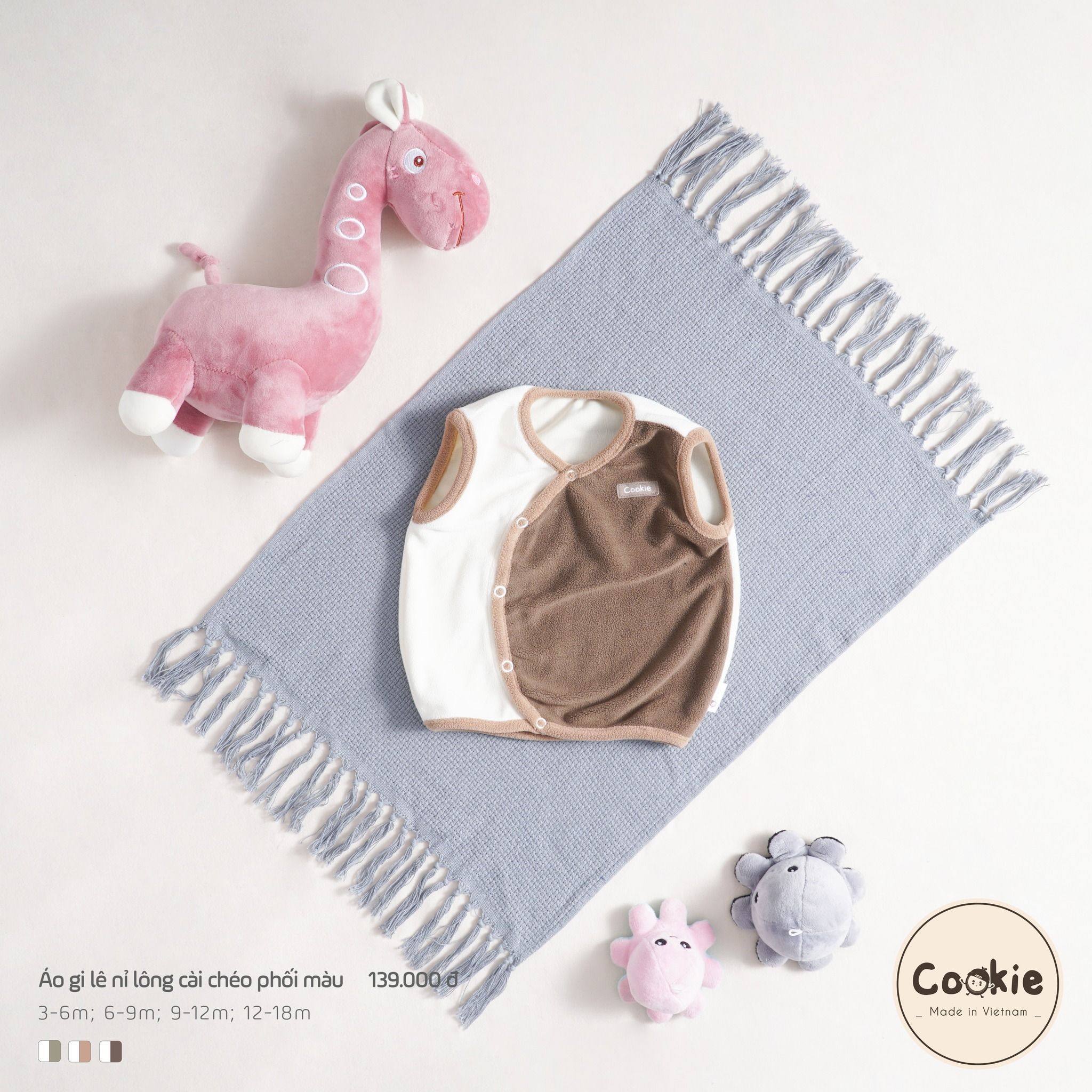 Áo gile nỉ lông cài chéo phối màu Cookie
