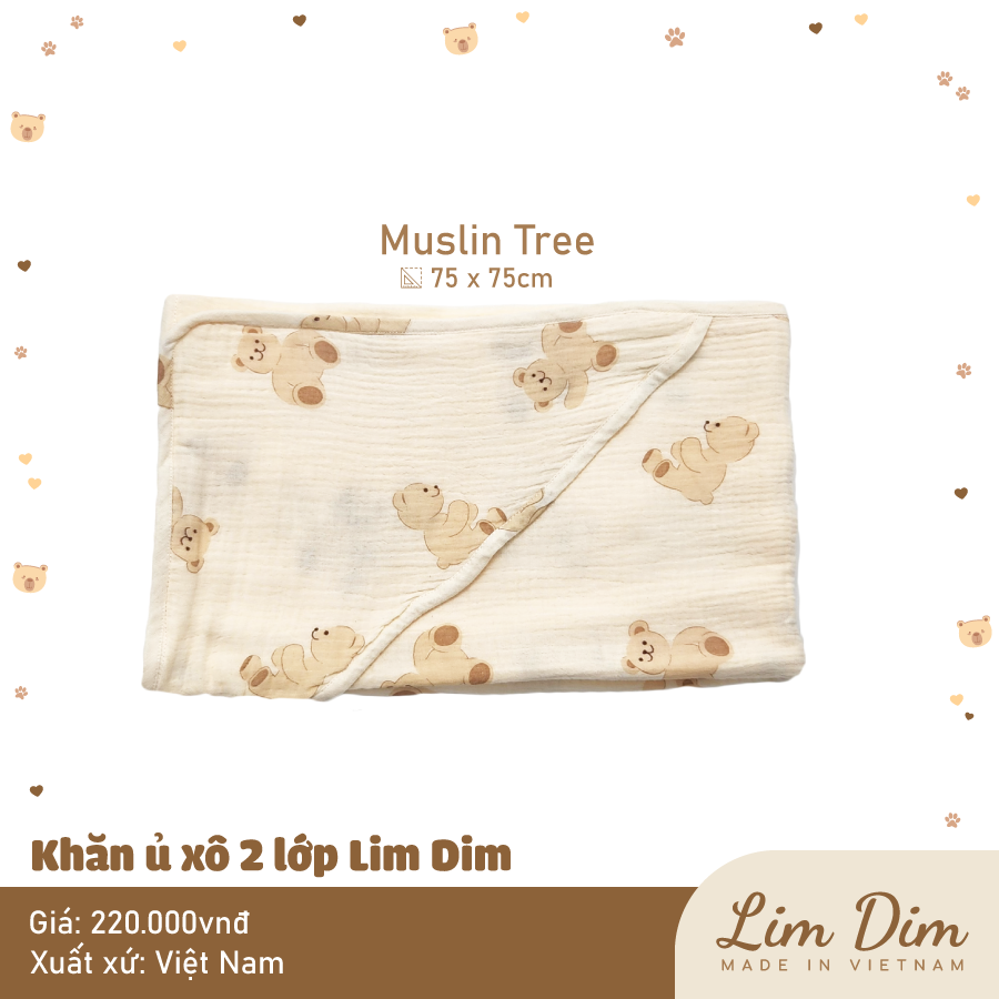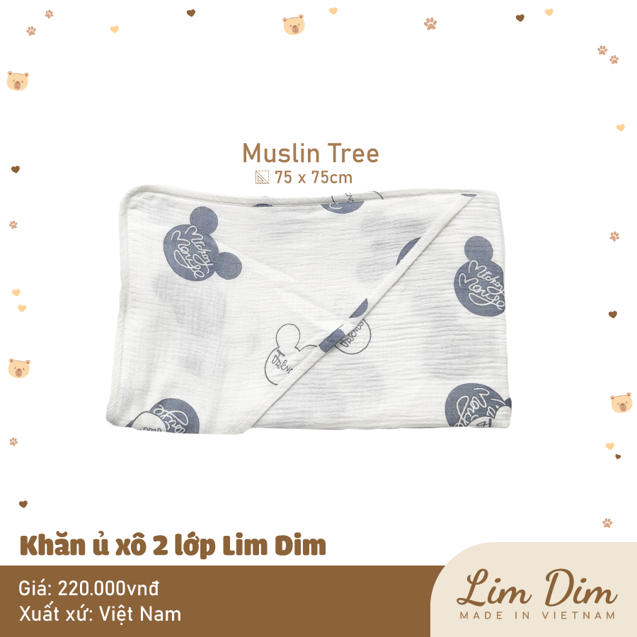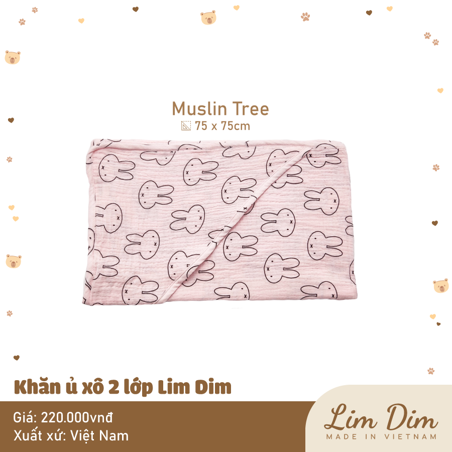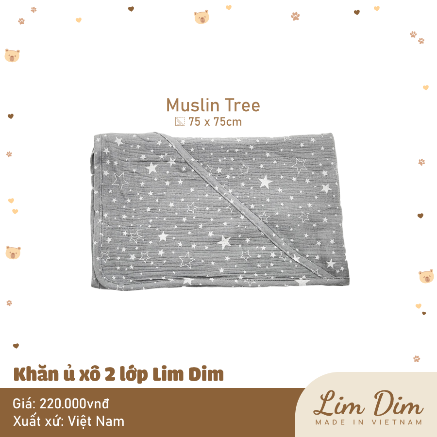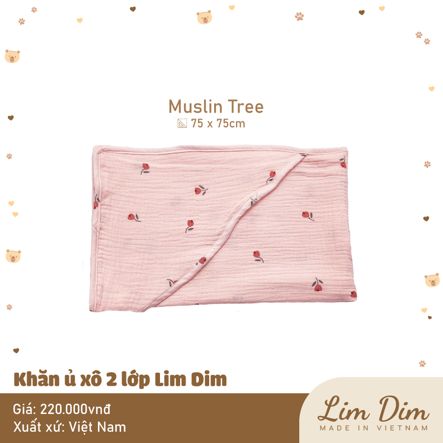 Ủ xô 2 lớp Lim Dim với chất vải xô cao cấp mềm thoáng, hoạ tiết xinh xắn, có chùm đầu tiện lợi