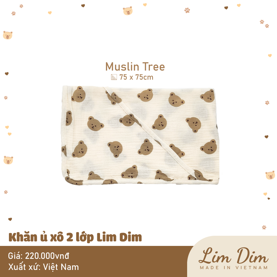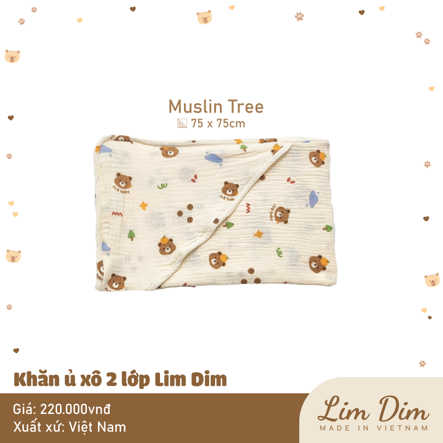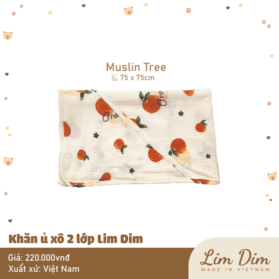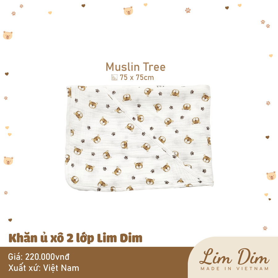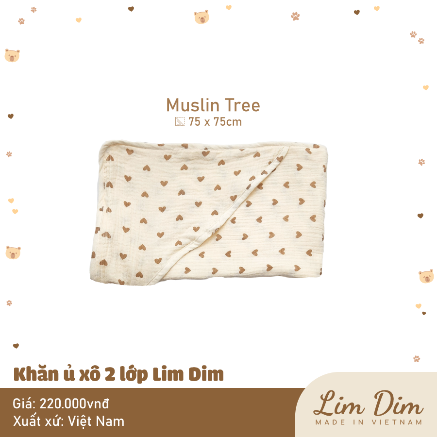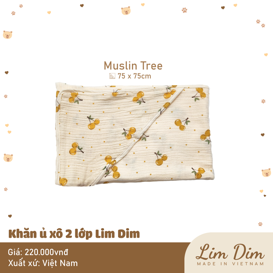 Ủ xô 2 lớp Lim Dim với chất vải xô cao cấp mềm thoáng, hoạ tiết xinh xắn, có chùm đầu tiện lợi