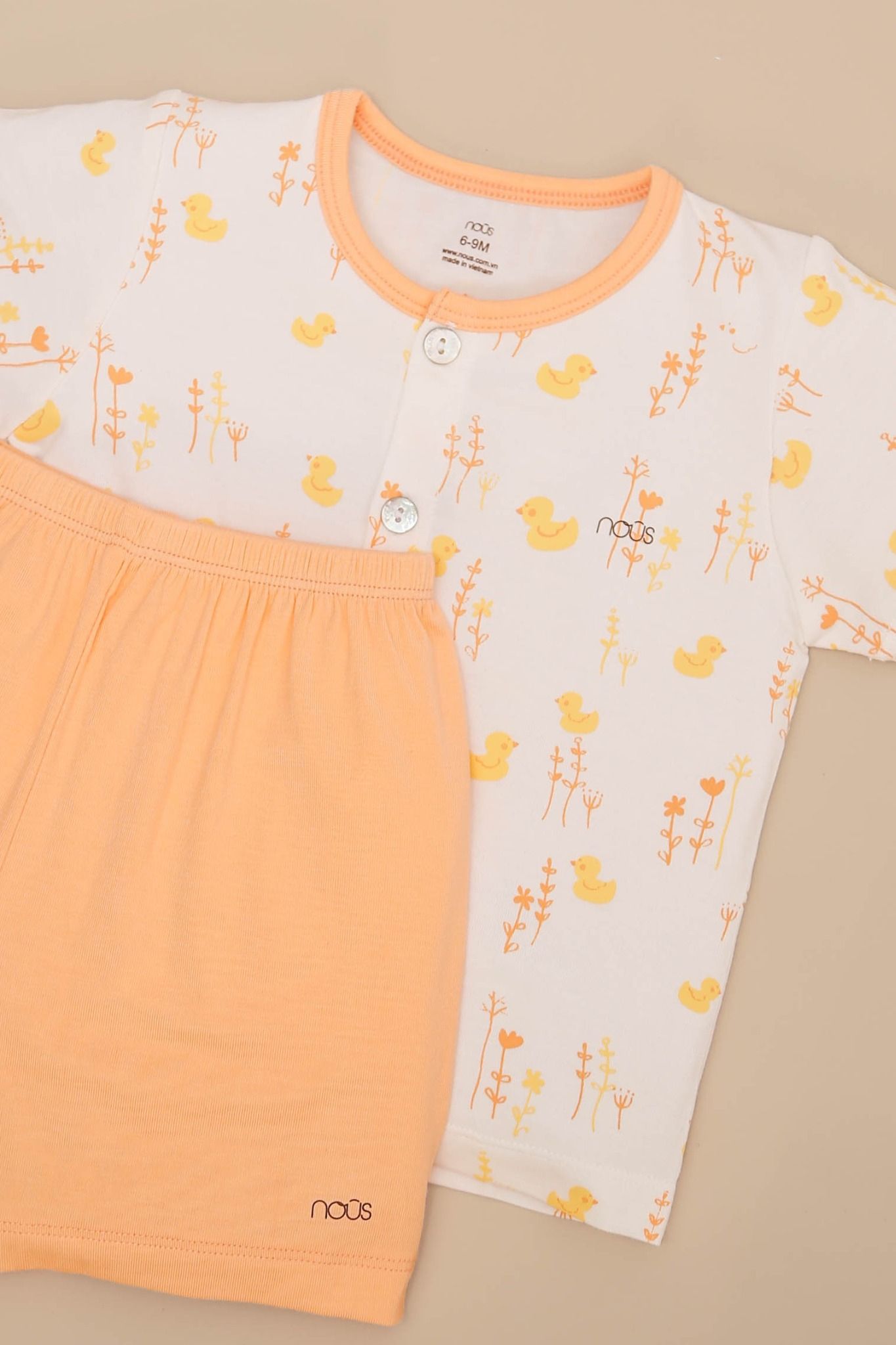 Nous Cài thẳng cộc Petit trắng cam đào hoạ tiết