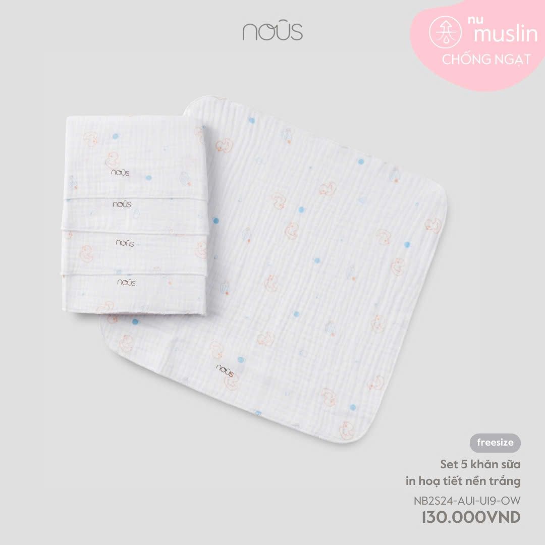 Set 5 khăn sữa in hoạ tiết nền trắng Nous Muslin (Vịt) - 2 lớp
