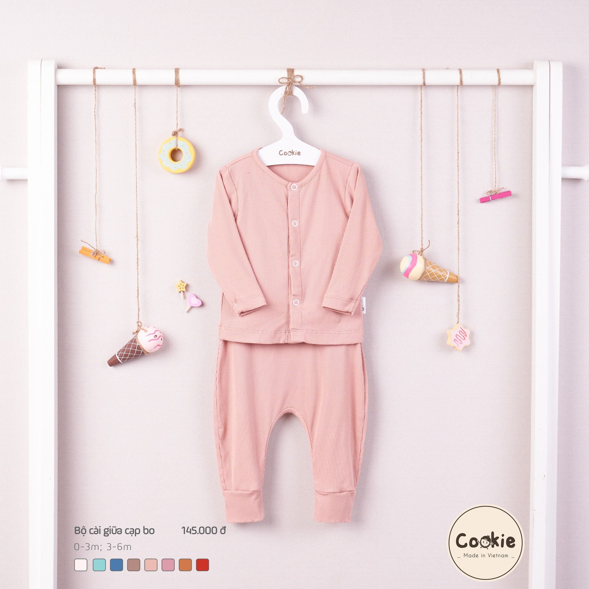 . Áo dài tay cài giữa, viền cổ, dáng ôm. Quần bom 2 mảnh, bo gấu, cạp cao, giữ ấm bụng.