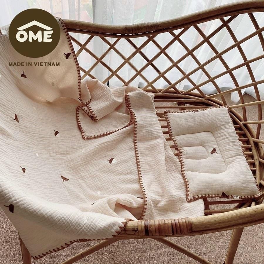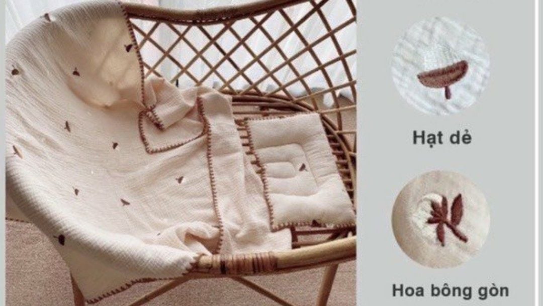 Set gối chăn xô thêu thủ công
