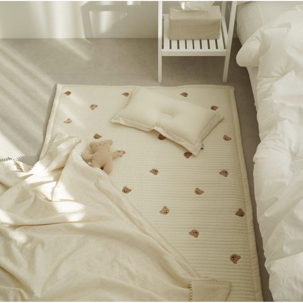 Thảm cotton Quilting Chezbebe cao cấp sản xuất tại Hàn Quốc dày dặn êm ái cho bé khi nằm chỉ thêu sợ dù to không xù, thêu hình